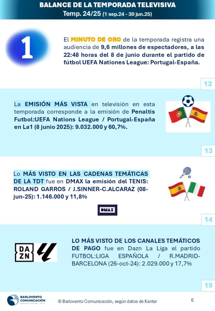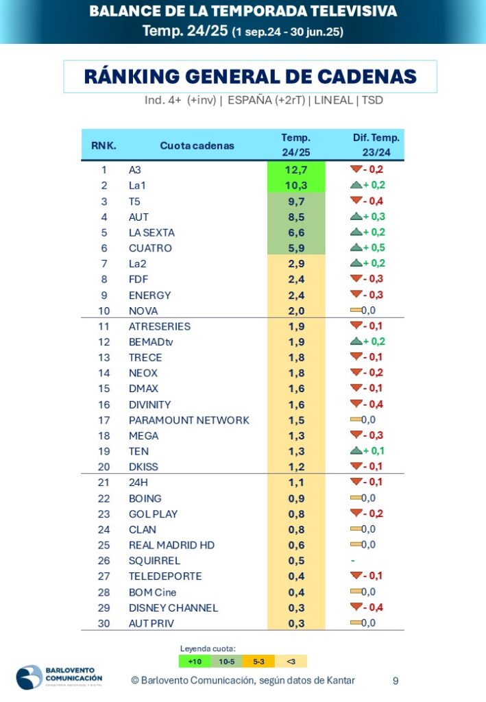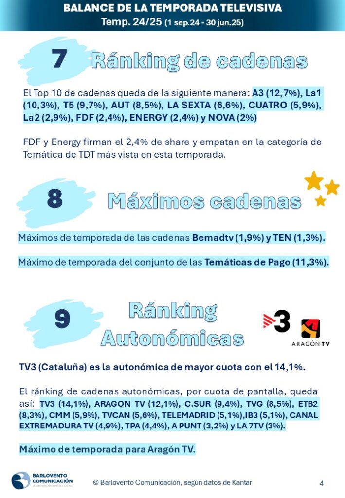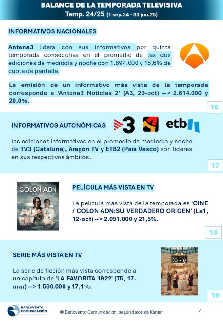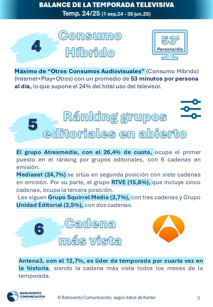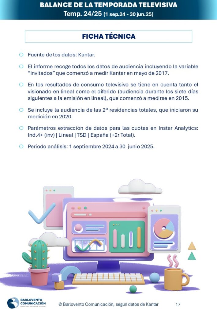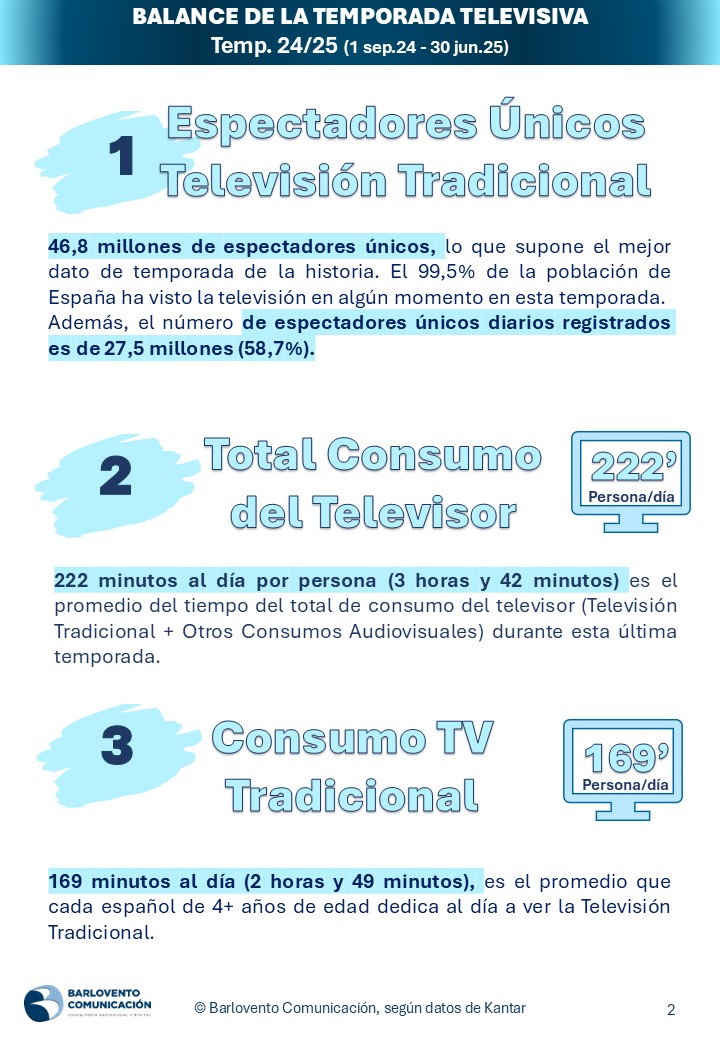 En este informe se incluyen los principales titulares de la audiencia de Televisión Tradicional de la temporada 24/25 (1 septiembre – 30 junio 2025).