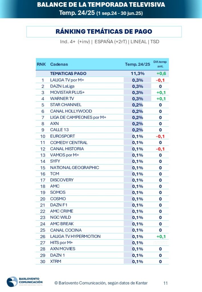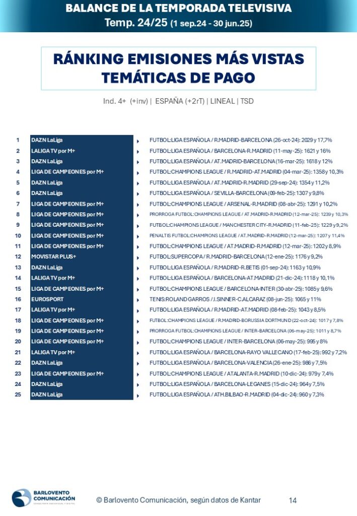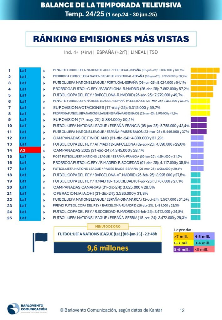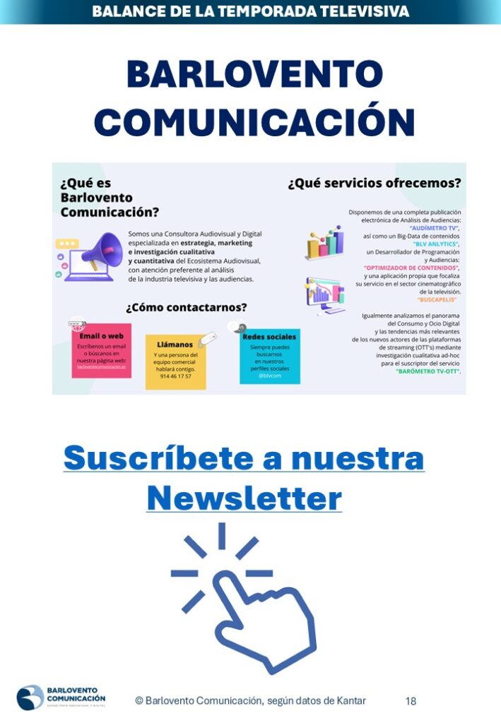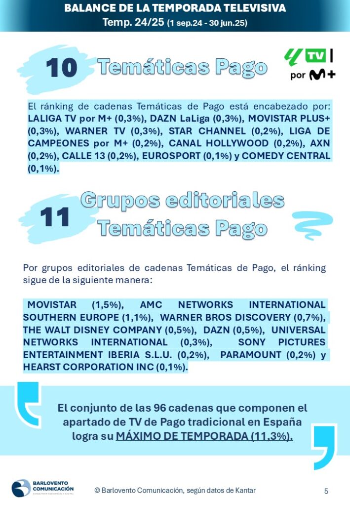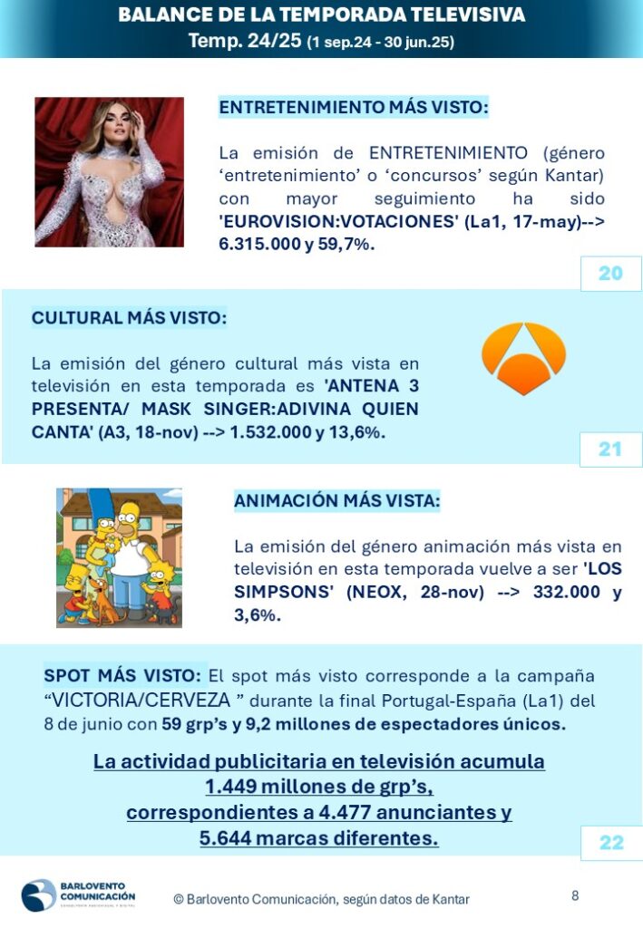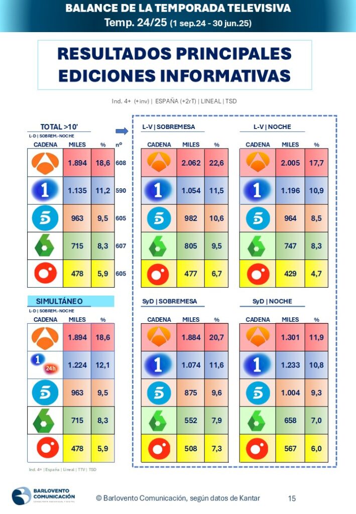 En este informe se incluyen los principales titulares de la audiencia de Televisión Tradicional de la temporada 24/25 (1 septiembre – 30 junio 2025).